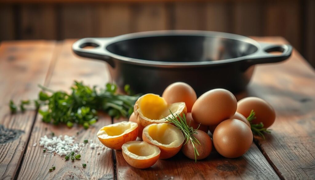 To make the perfect potato egg recipe, you need the right ingredients and tools. Your easy potato egg dish needs key components for a tasty breakfast. It will impress your family and friends.